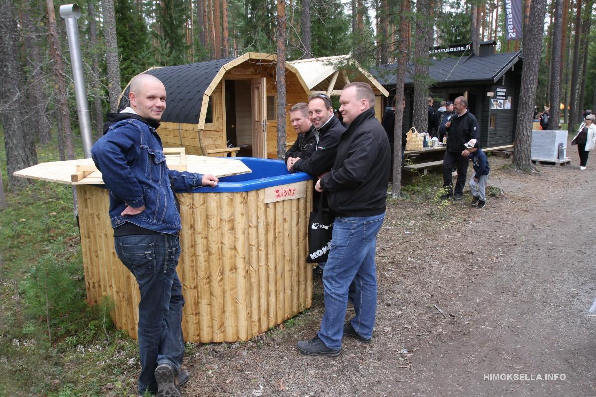 Yrityksen tuotteista esillä olivat savusauna, tynnyrisauna, jykevärakenteinen Kapteenin keinu, paljut ja saunan kiukaat.